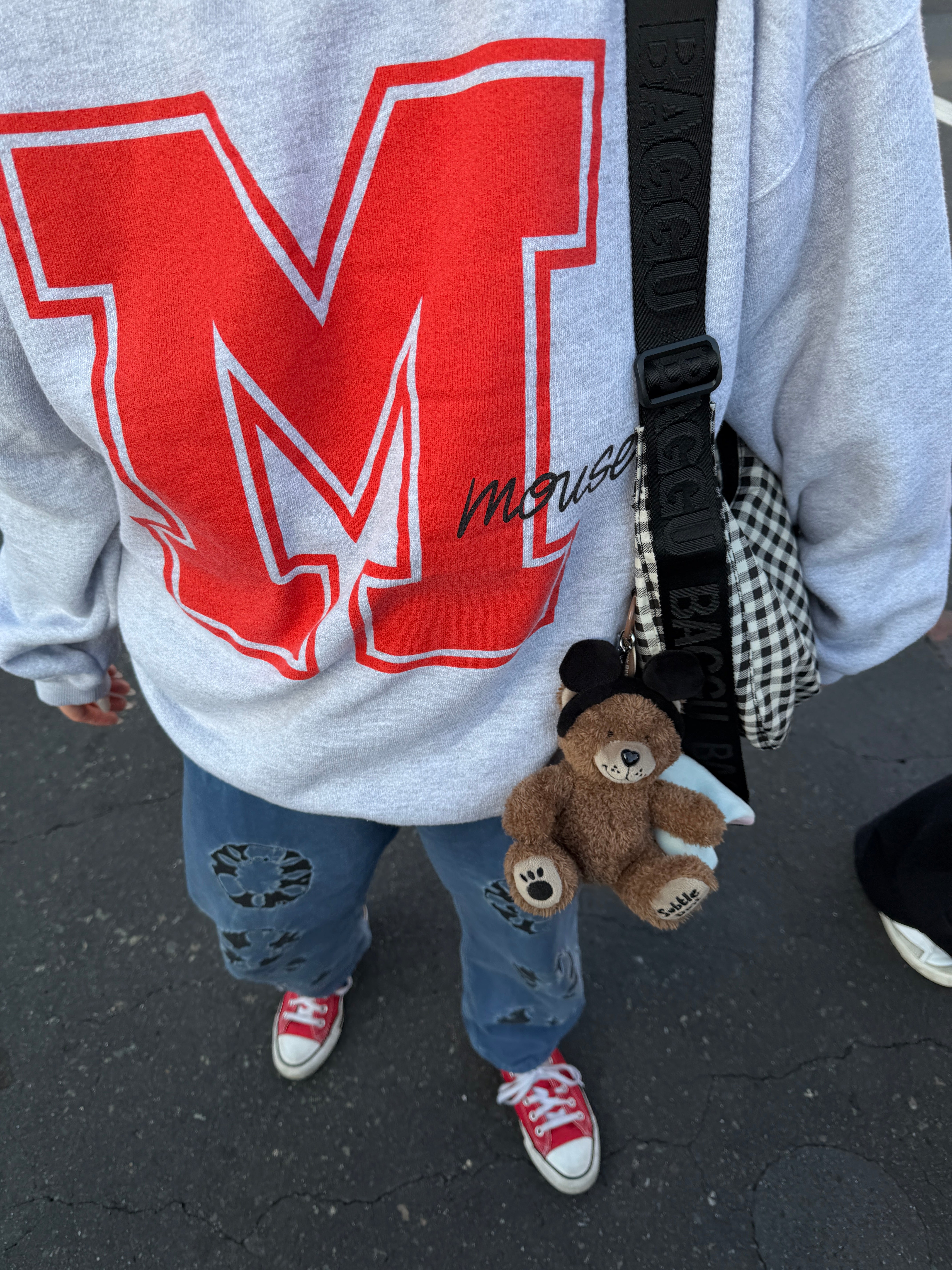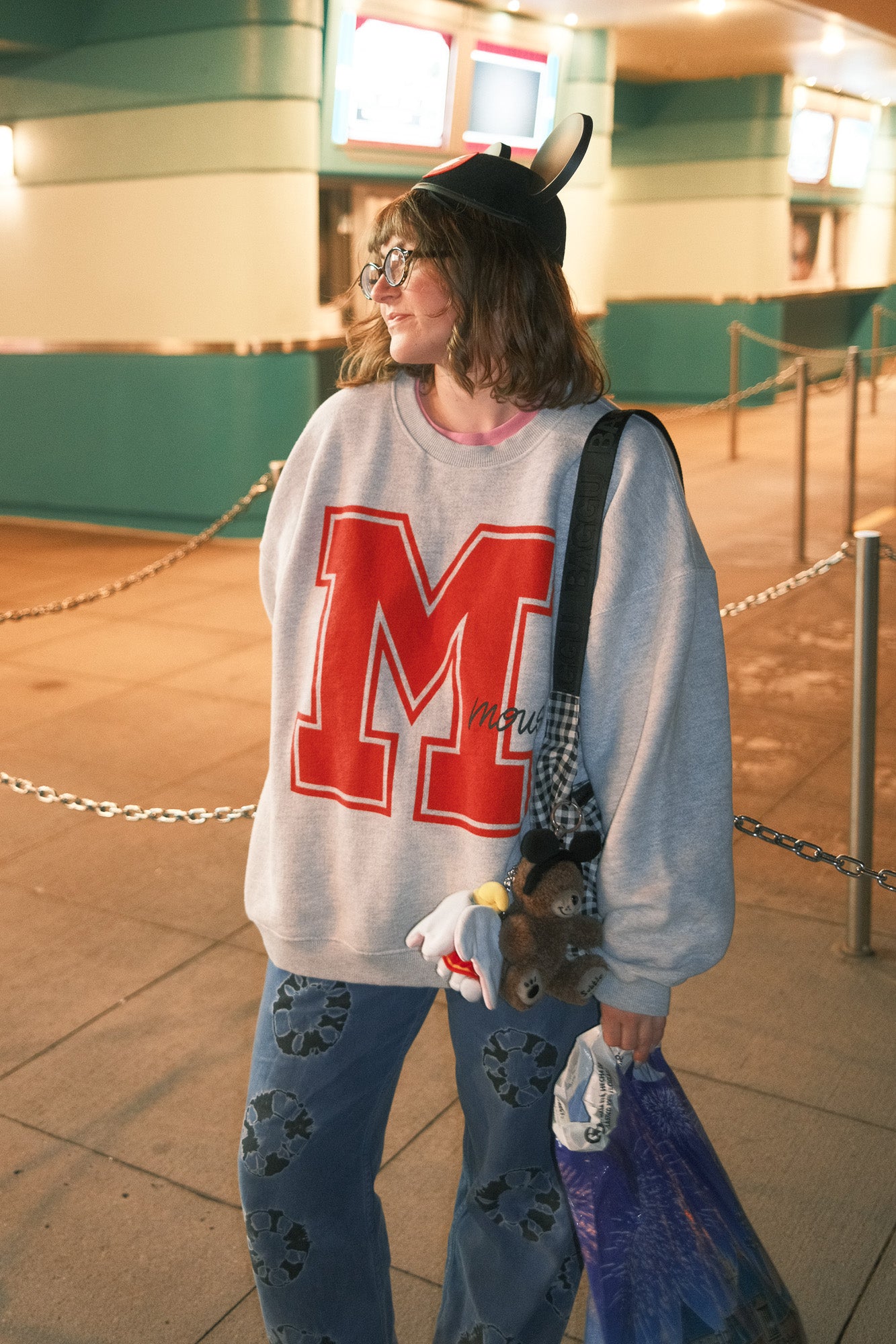 True to our name we’re paying homage to our favorite little mouse in the most subtle way possible! This design is inspired by a holiday themed crewneck the mouse himself wore in the parks! With a throwback letterman vibe this tee can be preppy, paired with a collared shirt underneath and some slick slacks, or dressed down with your coziest sweats and sneakers. Our heather grey crewnecks are crafted with 98% cotton and 2% polyester, giving you that ultra-soft fleece feel, with a higher cotton blend that results in less pilling over time. Designed with the perfect oversized fit, each crewneck features 2x1 ribbing at the neck, cuffs, and hem for structure that still feels effortless. Our premium screen printing keeps graphics soft, vibrant, and built to last, draping just right every time. Oh boy we can’t wait for you to rock this crewneck!