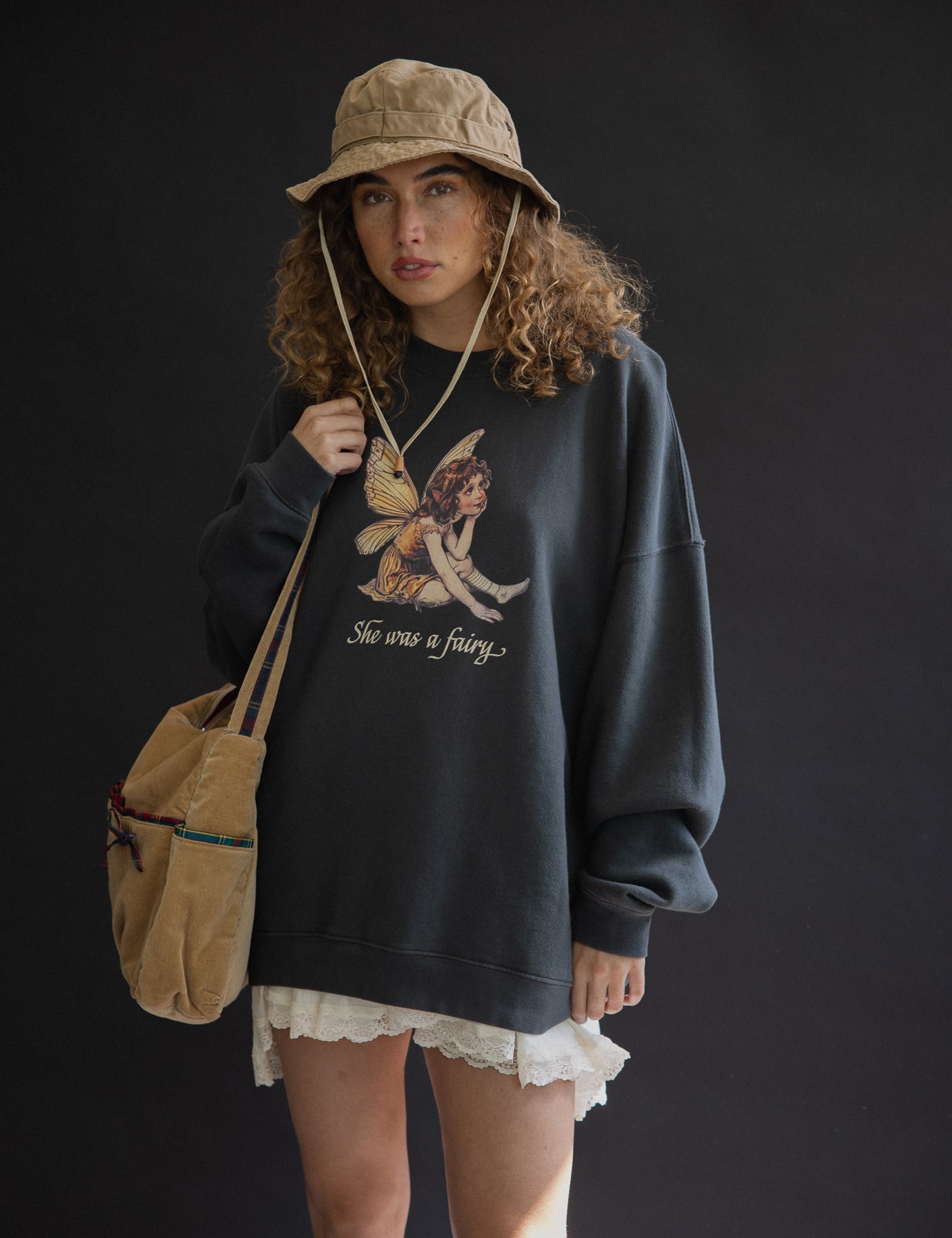 The She Was a Fairy Oversized Crewneck in Vintage Black
