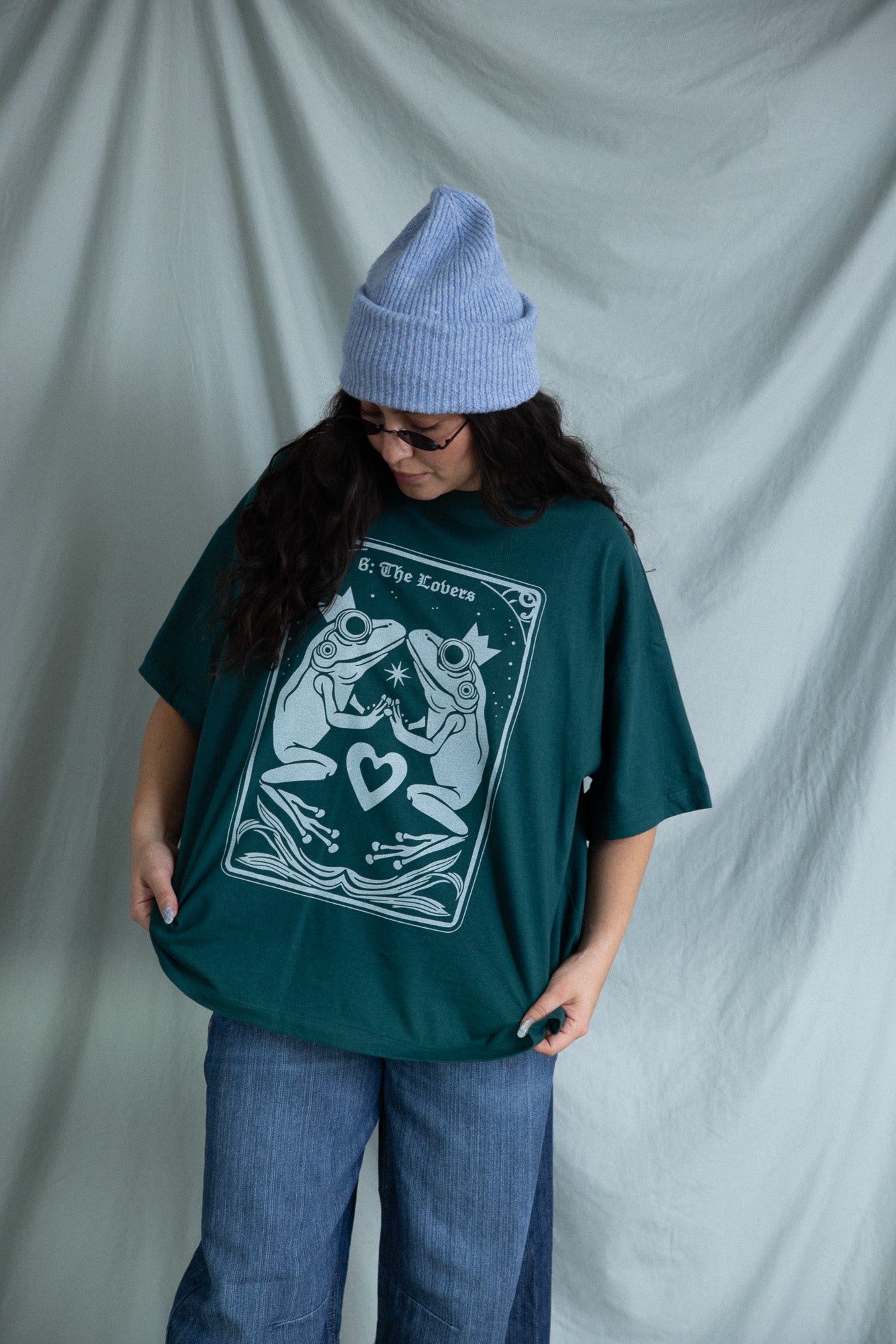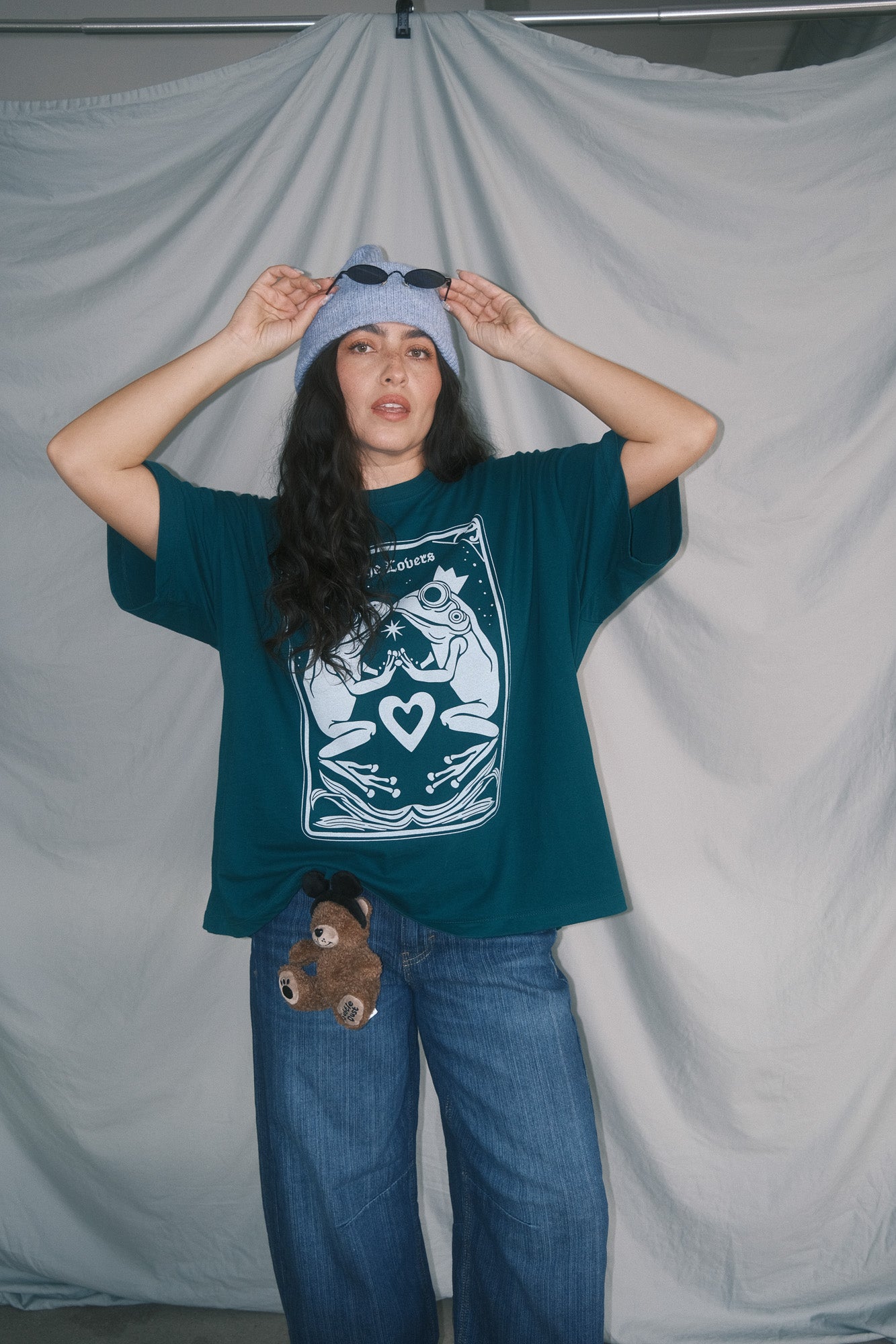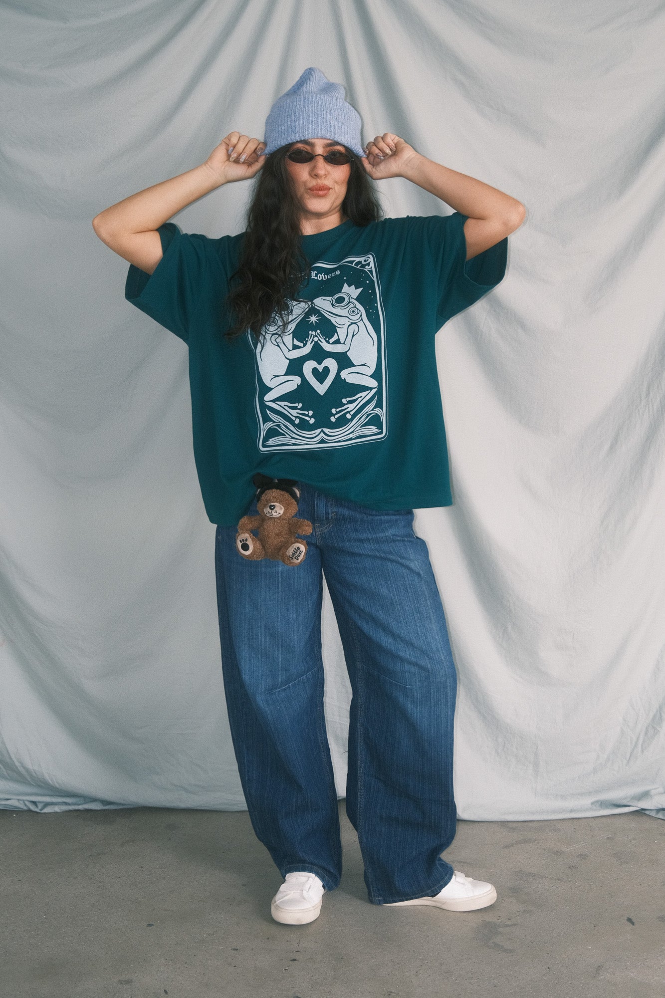 Inspired by one of our favorite princess tales, these enchanting animals and their fate-filled journey bring the mystical fun of the Bayou to every outfit! This tee can be dressed up with plaid pants and loafers, or dressed down with jeans and sneakers. Our tees are made from 100% cotton for all day cozy comfort, and crafted with high quality screen-printing for long-lasting color and a soft, flexible feel. We designed our tees with the perfect oversized fit for the cutest baggy vibes. The Frog Princess is perfect for anyone who believes in the power of destiny, hard work, and a little bit of magic!