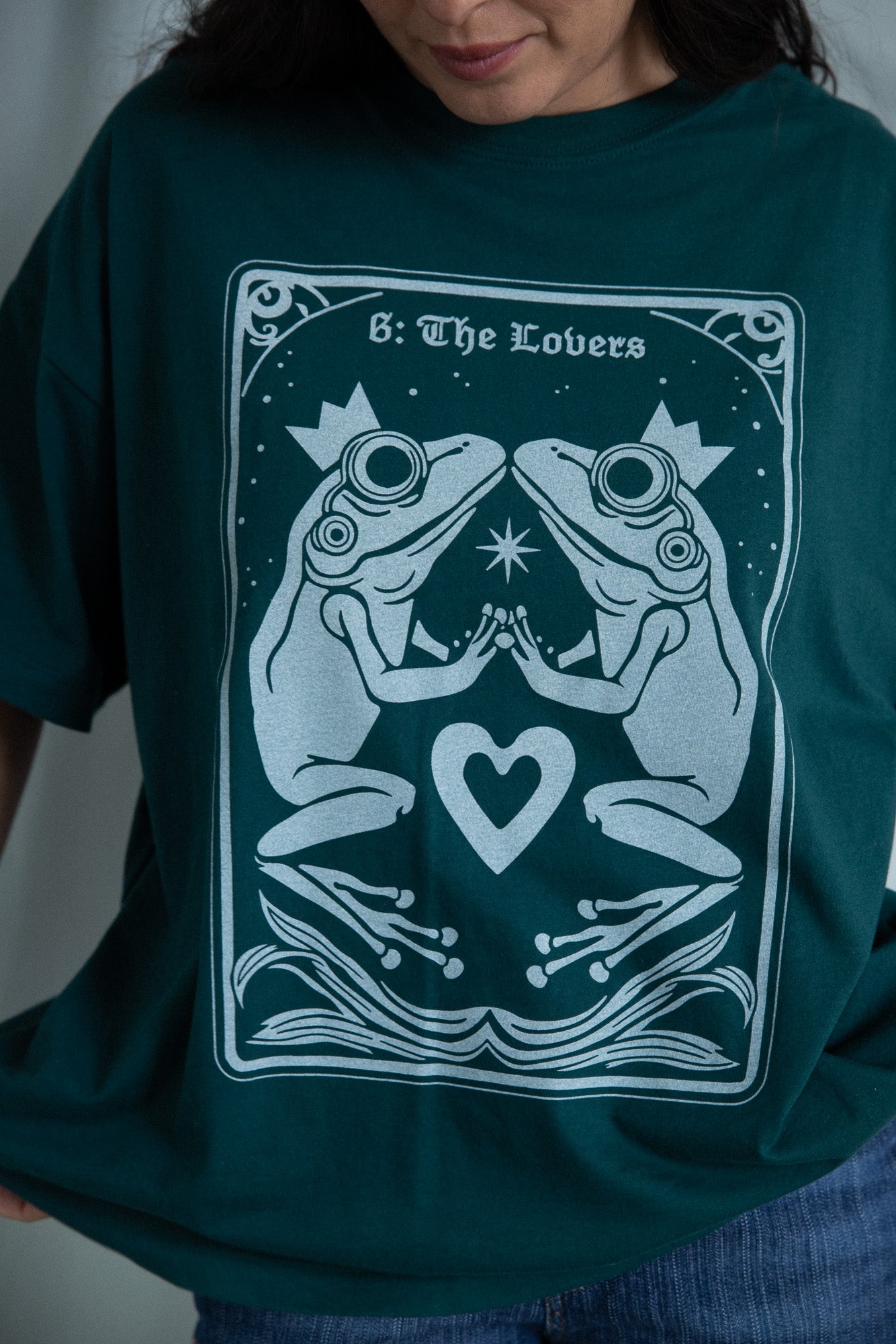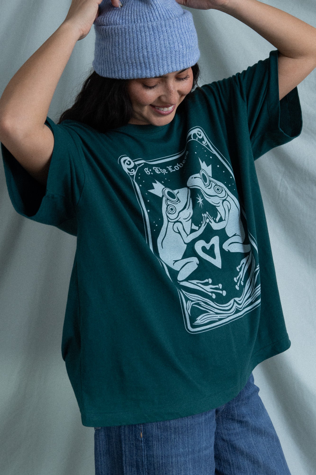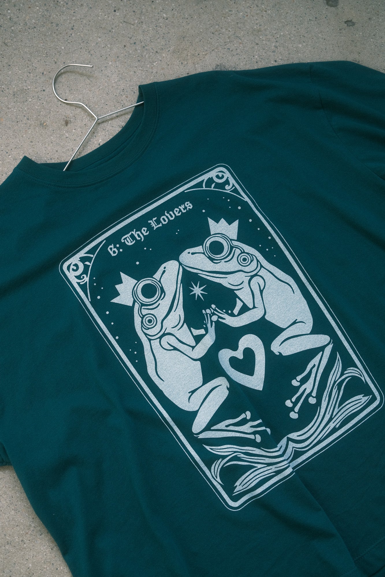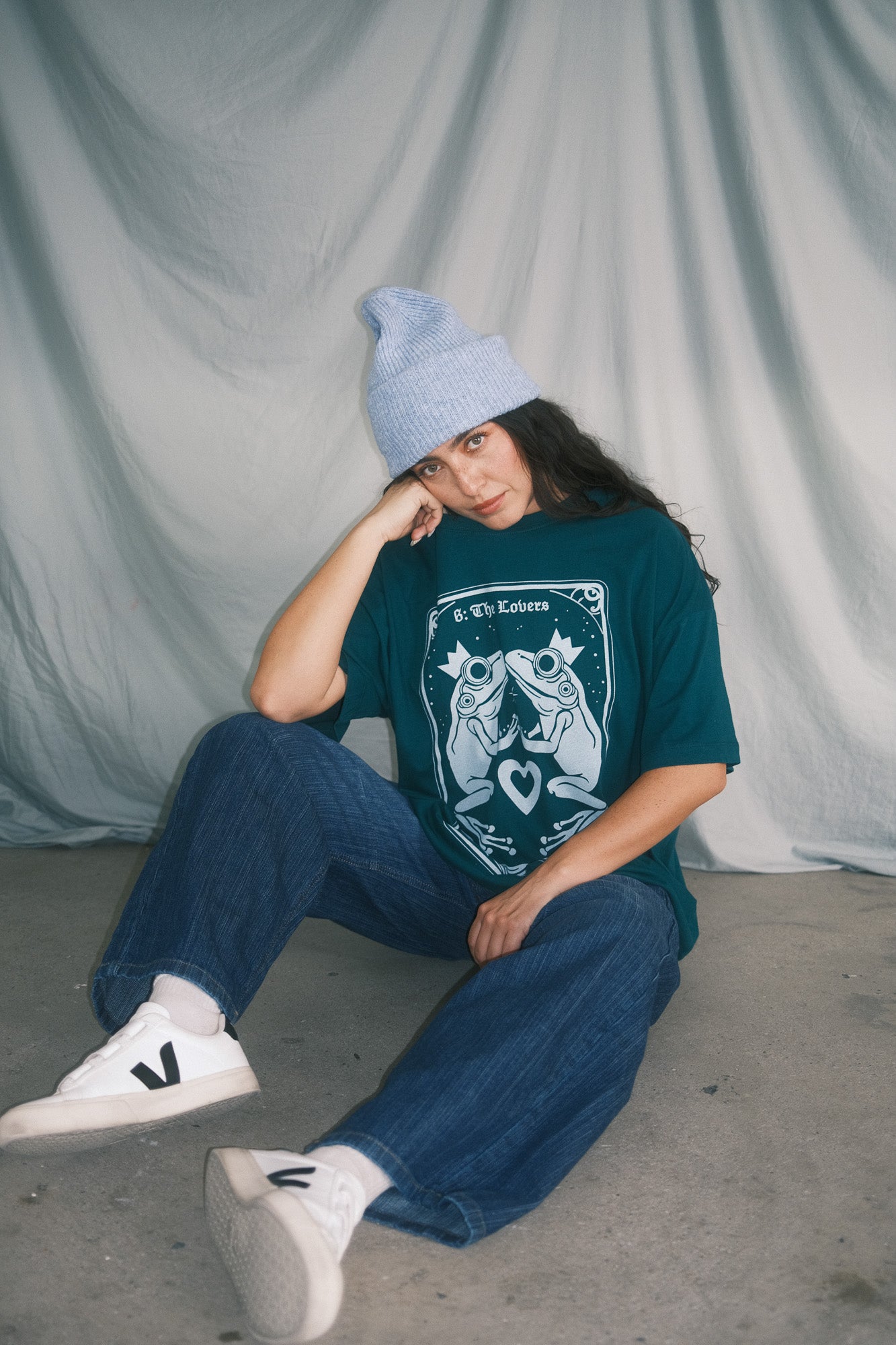 Inspired by one of our favorite princess tales, these enchanting animals and their fate-filled journey bring the mystical fun of the Bayou to every outfit! This tee can be dressed up with plaid pants and loafers, or dressed down with jeans and sneakers. Our tees are made from 100% cotton for all day cozy comfort, and crafted with high quality screen-printing for long-lasting color and a soft, flexible feel. We designed our tees with the perfect oversized fit for the cutest baggy vibes. The Frog Princess is perfect for anyone who believes in the power of destiny, hard work, and a little bit of magic!