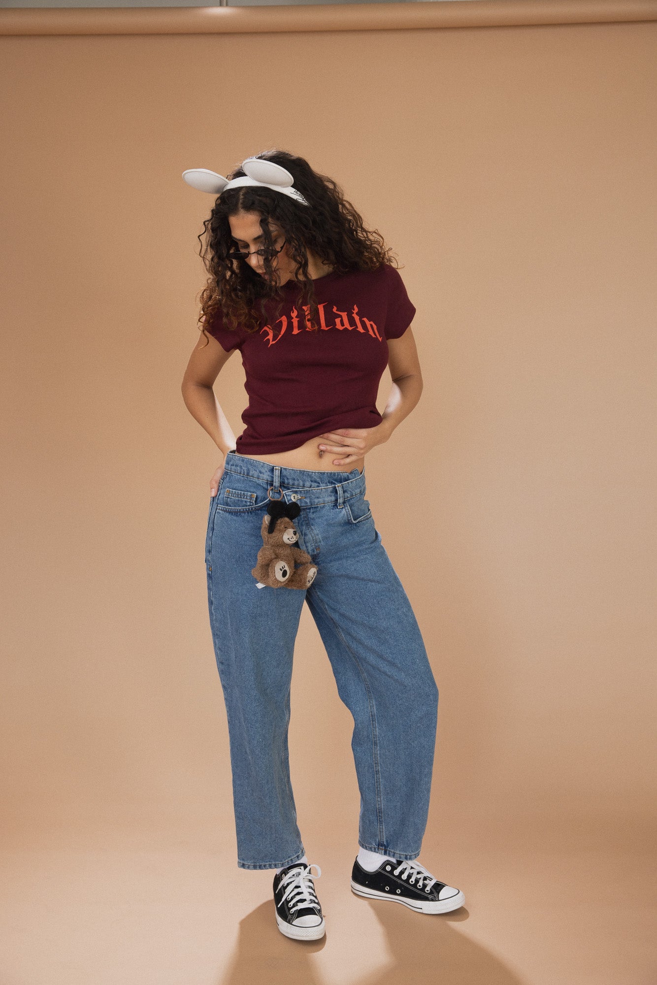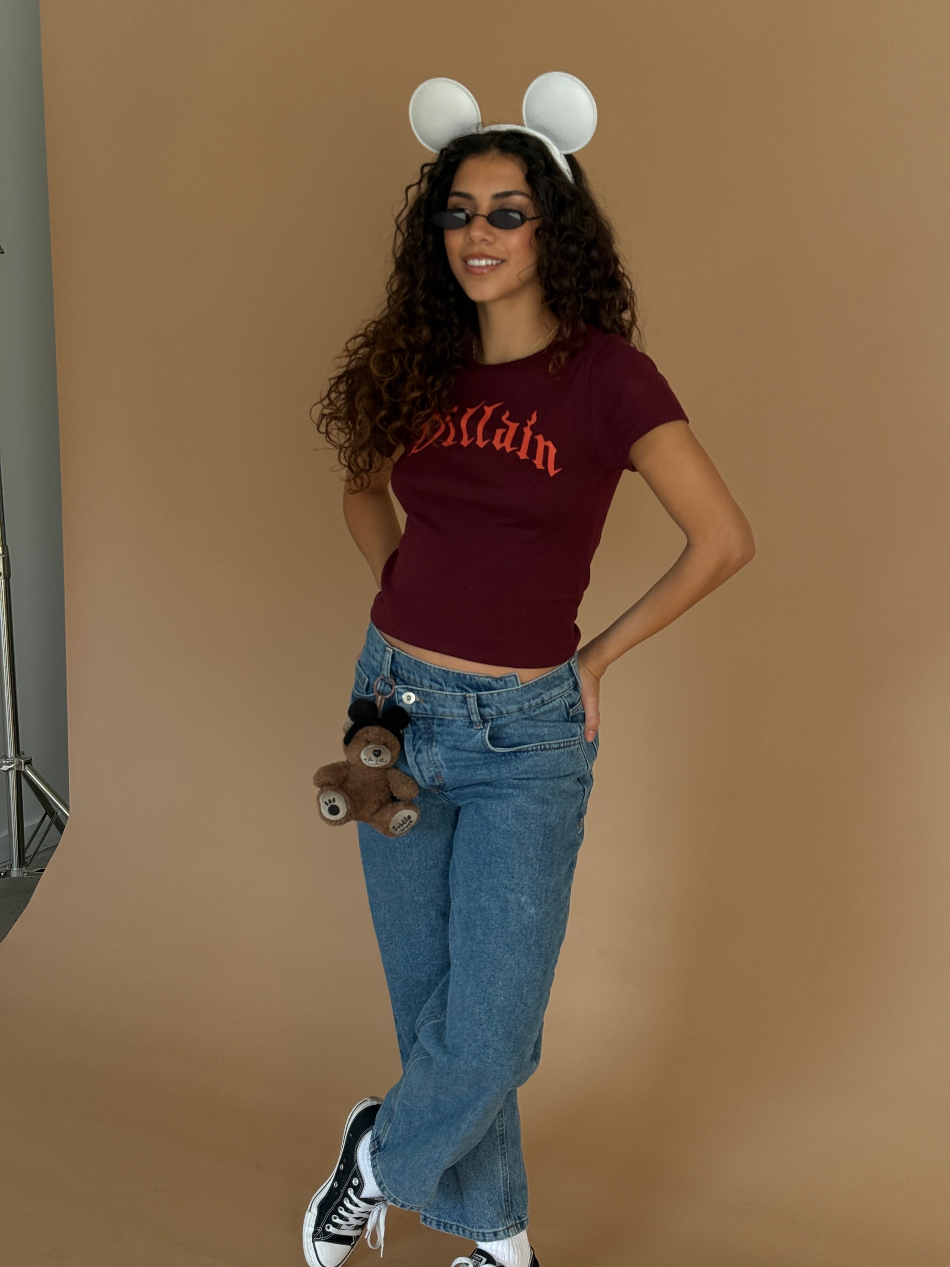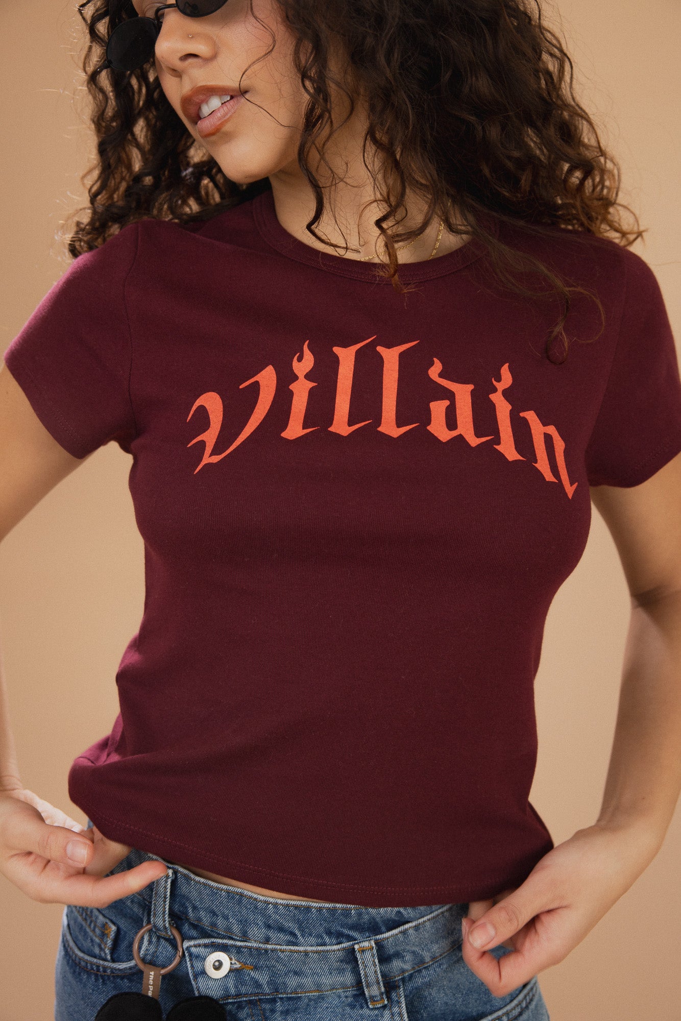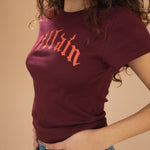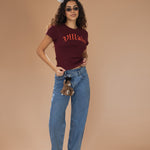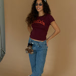 The Villain Baby Tee in Maroon