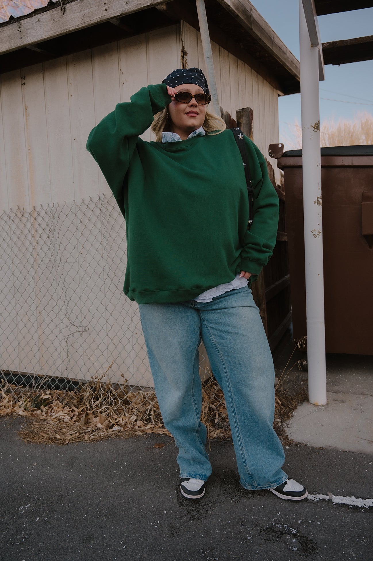 The comfiest layer you’ll own—soft, slouchy, and made for slow mornings or chilly nights. This crewneck has an intentionally oversized fit with roomy sleeves and a relaxed drop shoulder. It’s big in all the right ways, so stick with your usual size for that perfectly undone look.