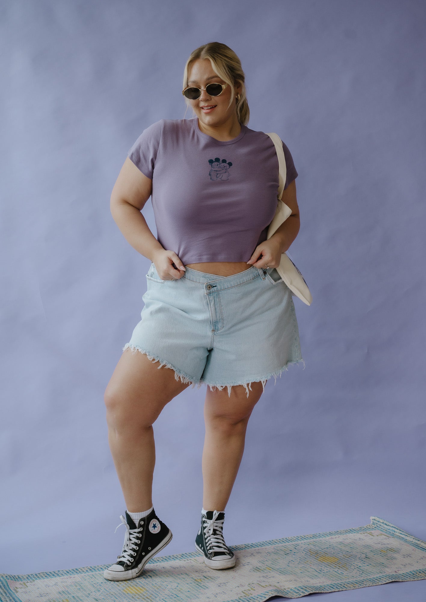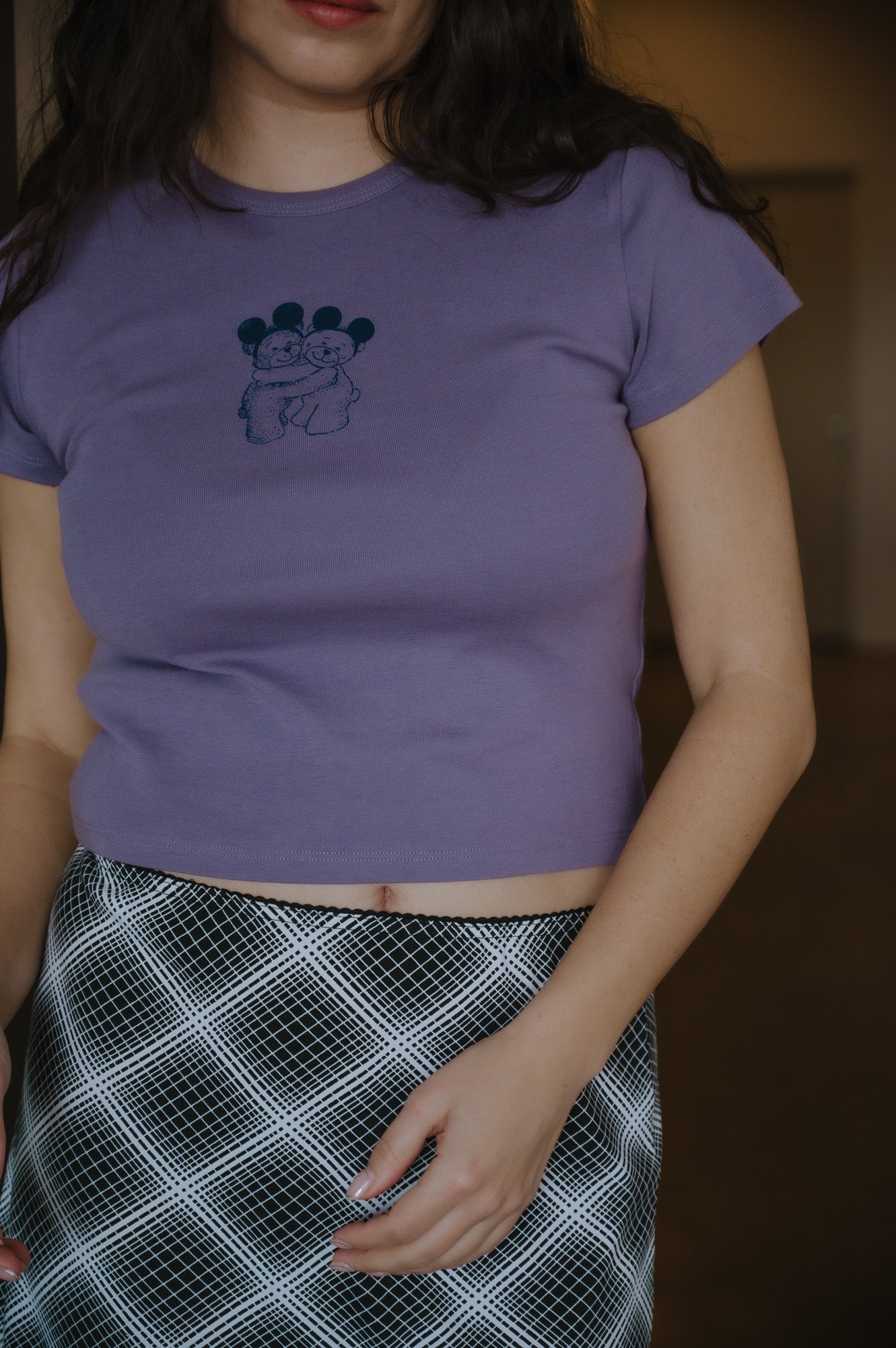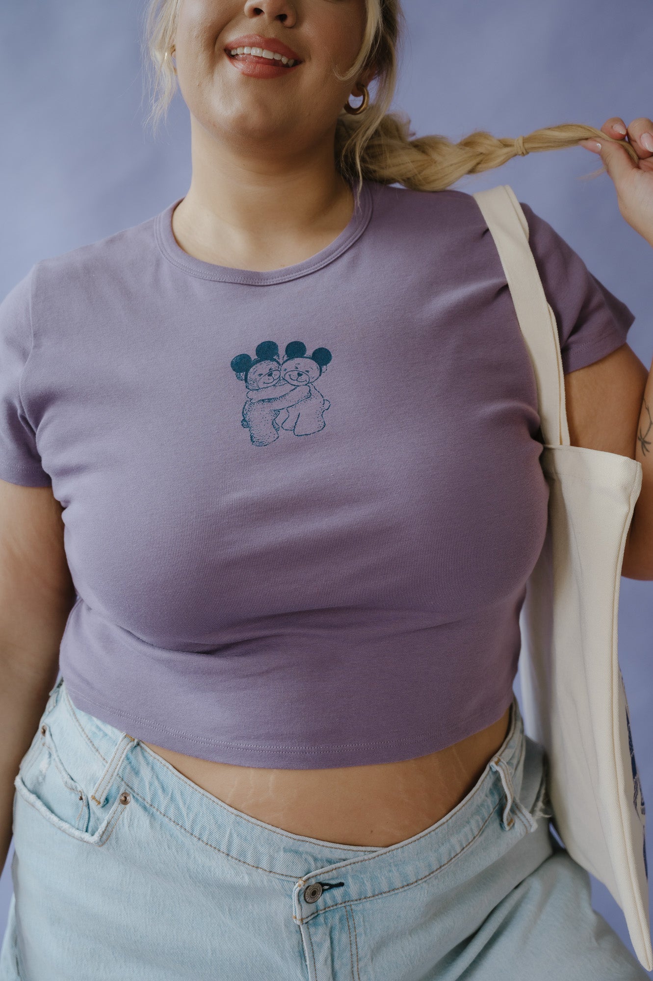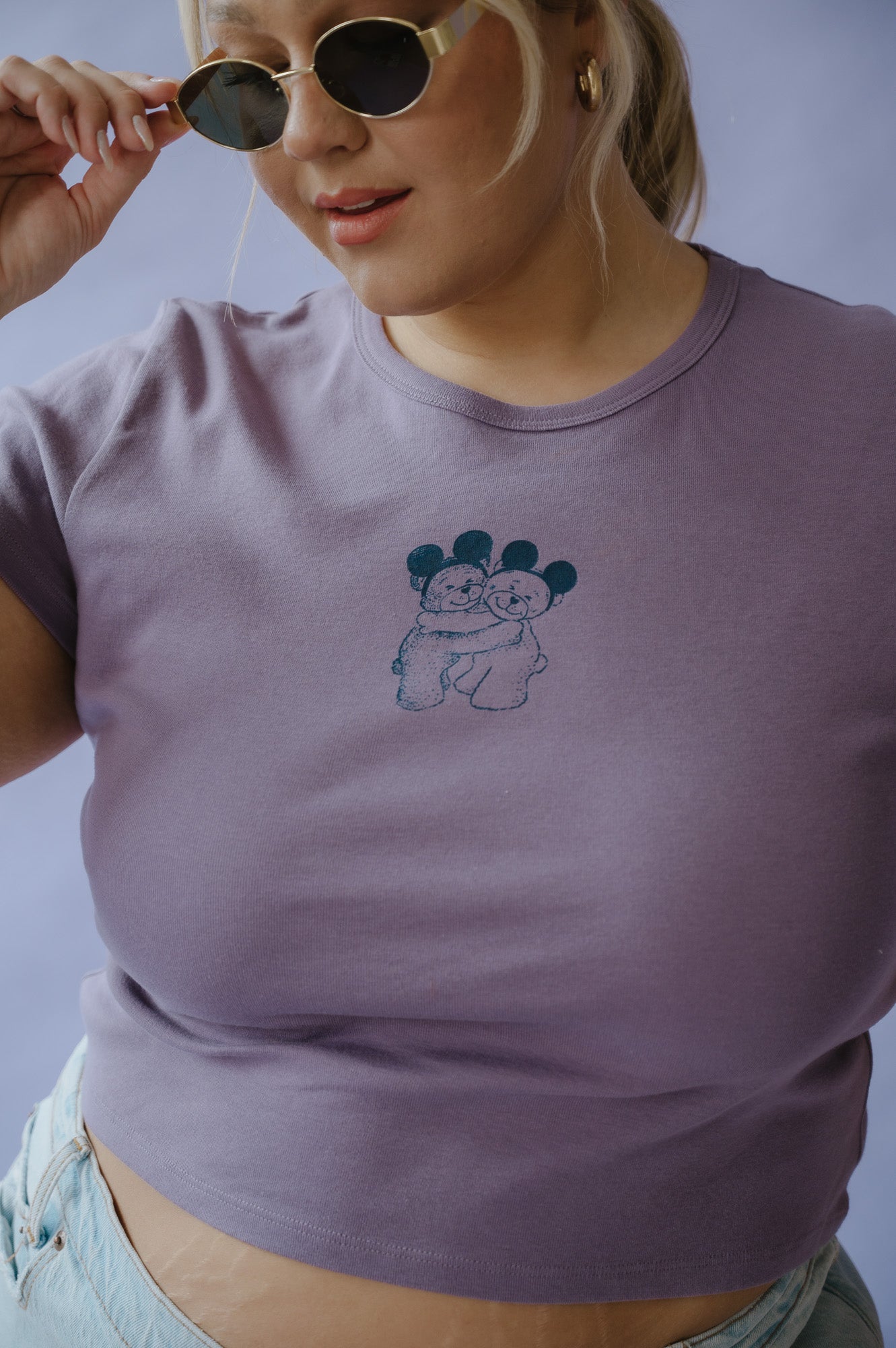 A: Our baby tees are designed to fit close to the body — think that cutie vintage shrunken tee vibe. We recommend ordering your true size for the intended fit.